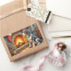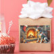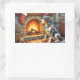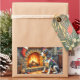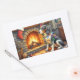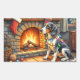 Pegatina Rectangular Bluetick Coonhound Fireplace with Christmas Lights