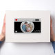 Pegatina Rectangular Boda de fotos de cámara negra único Guardar la fec