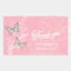 Pegatina Rectangular Boda mariposa chica de flores gracias rosa