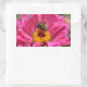 Pegatina Rectangular Bonito floral Rosa Zinnia Bumble abeja