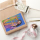 Pegatina Rectangular Bonito Oscuro Haired Purple Mermaid Harp Ocean