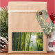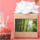 Una representación digital de un bosque de bambú con luz solar que fluye a través del bambú.