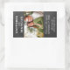 Perfecto para bodas de viñedos o favores de botellas de vino, estos sellos fotográficos personalizados presentan monograma con nombres de novias y novios, fecha boda, tipo de vino, y mensaje de agradecimiento que puede ser completamente personalizado. Estilo de fondo de pizarra negra con diseño de texto blanco.