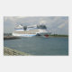 Después de una visita a la costa espacial, un crucero alemán con una cara sonriente en su proa sube por el Canal Canaveral, hacia el Océano Atlántico.