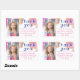 Pegatina Rectangular Burbujas Rosadas Girly Foto Cumpleaños Gracias