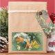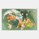 Hermosos pegatinas vintage con dos gorros sobre una luna de hojarasca rodeados de flores, pintados por la ilustradora/artista comercial estadounidense Ellen Hattie Clapsaddle.