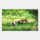 Caballos pastoreando en una pradera de verano. Acuarela.