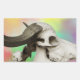 Pegatina Rectangular Calavera de búfalo en fondo acuarela