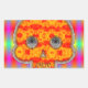 Pegatina Rectangular Calavera de Robot colorida sobre fondo arcoiris