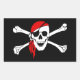 Pegatina Rectangular Calavera pirata y bandera transversal