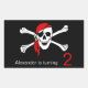Pegatina Rectangular Calavera pirata y encrucijada, segundo cumpleaños