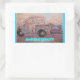 Pegatina Rectangular camión anticuado de patina azul