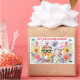 El diseño más colorido y divertido con un bonito carácter de emoji en un jardín florido con abejas, mariposas, pájaros planos y corazones rosas. Perfecto para una niña que no se siente tan bien, haga su sonrisa con este pegatina, y añada el nombre del niño para hacerlo extra especial!