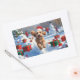 Pegatina Rectangular Carrera de Cockapoo en Nieve con Gorra de Navidade