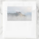 Pegatina fotográfico rectangular del histórico castillo Bled, construido sobre las rocas a lo largo del lago Bled, rodeado de nubes y niebla de tierra, como si fuera un castillo construido en el cielo, en Bled, Eslovenia.