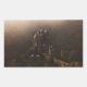 Pegatina fotográfico rectangular con el castillo medieval de Burg Eltz, construido sobre una colina rodeada de bosques con árboles en colores otoñales en la niebla matutina al amanecer, creando una imagen espeluznante cerca del río Mosel en Alemania.