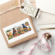 Pegatina Rectangular Cats Reading Books Cozy Library Scene