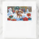 Pegatina Rectangular Cavalier King Charles Spaniel Nieve con Navidades