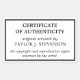 Pegatina Rectangular Certificado blanco negro de autenticidad