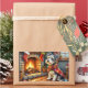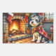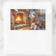 Pegatina Rectangular Cesky Terrier Fireplace with Christmas Lights