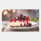 Un trozo de tarta de queso con cerezas en la parte superior.