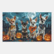 Descanse el espíritu espeluznante con este inquietante diseño de Halloween que presenta una manada de perros bajo un cielo oscuro, iluminado por la luna, rodeados de bates voladores y calabazas brillantes. Perfecto para los amantes de la diversión con sus peludos amigos.