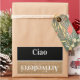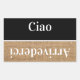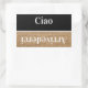 Pegatinas rectangulares con "Ciao" la famosa manera italiana de saludar, y Arrivederci es una manera de decir Adiós. Diseño moderno de Lumirala.
