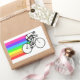 Ciclista moderno con diseño de senderos arco iris.