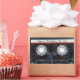 Vieja cinta negra con la canción "Happy Birthday To You" sobre fondo blanco. El texto de la etiqueta es modificable.
