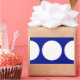 Este patrón geométrico audaz presenta un círculo blanco en el centro y dos círculos blancos en los bordes de un fondo azul vibrante. Si desea añadir un monograma o una imagen al diseño, haga clic en el botón "Personalizar". Imagen creada digitalmente. Copyright © 2011 Claire E. Skinner. Todos Los Derechos Reservados.