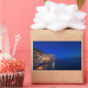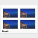 Pegatina fotográfico rectangular con el pequeño pueblo de Manarola, uno de los cinco famosos pueblos montañosos de Cinque Terre, construido sobre un acantilado que domina el mar Mediterráneo, con las luces encendidas durante la Hora Azul al comienzo de la noche en Liguria, Italia.