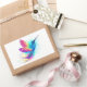 Colibrí luminoso, irrisorio, exótico volador sobre fondo blanco, pintado con pintura multicolor, acuarela. Colibrí arcoiris.
