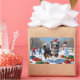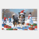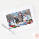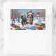 Pegatina Rectangular Collie rudo en nieve con Gorra Navidad