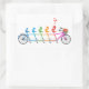 Pegatina Rectangular colorida bicicleta tándem con familia de pájaros l
