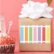 Patrón geométrico lineal, rectangular, rayado de tonos pastel arcoiris de azul, naranja, verde, rosa, púrpura, rojo y amarillo.