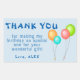 Coloridos Globos Niños Cumpleaños Gracias Pegatina. Gracias pegatina de cumpleaños por la fiesta de cumpleaños de los niños. Este diseño está decorado con globos de fondo azul, rojo, azul, rosa y verde. Gracias a tu familia y amigos. Personalice al pegatina con el nombre de su hijo y un mensaje de agradecimiento.