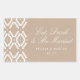 El modelo bohemio Eat, Drink & Be Casried pegatina se puede utilizar en los favores de boda y ducha con mini champán y mini botellas de vino. El fondo es un falso kraft.