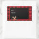Pegatina Rectangular Comprobación de búfalo negro rojo con renos