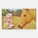 Pegatina Rectangular Conejo blanco y caballo amarillo
