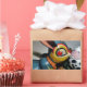 Pegatina Rectangular Conejo de juguetes y huevo de vaca