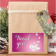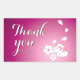 Un conjunto de pegatinas de rectángulos morados de personalizable "Gracias" con un ilustracion de dos lindos conejos de nieve japoneses, dos flores de sakura y cuatro pétalos de flores de sakura sobre un fondo morado en la esquina inferior derecha. Las palabras "Gracias" son personalizable.