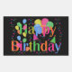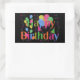 Pegatina Rectangular Confetti, Gorras Fiestas y globos Cumpleaños Negro