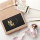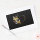Marco dorado en forma de corazón, decorado con oro, joyas y mariposas blancas sobre fondo negro.