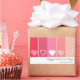 Un moderno pegatina El día de San Valentín con corazones blancos y rayas rojas/rosas. Personalice agregando un mensaje o texto personal de San Valentín en una hermosa letra manuscrita.