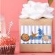 Diseño original pintado en acuarela por Sandra Gale, con estrellas de pescado, caballo de mar, tortuga y conchas sobre un fondo de rayas azules translúcidas verticales. Excelente diseño para el verano, casas de playa, bungalows o para todo aquel que ame la playa, el océano o el pescado.