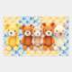 Cute stickers with crocheted stuffed animal teddy bears in brown and yellow. These are cute to seal baby shower invitations and favor bags.