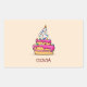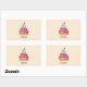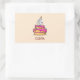 Pegatina Rectangular Cuarto cumpleaños chica, cuatro en pastelito rosa