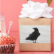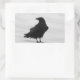 Un cuervo común se opone orgulloso a un fondo del blanco nevoso. El cuervo es el pájaro oficial del territorio del Yukón, en Canadá septentrional.