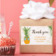 Una linda acuarela de piña gracias pegatina de ducha bebé, con una elegante tipografía de tipografía, con confetti purpurina dorado, gafas de sol con forma de corazón en una linda piña.