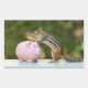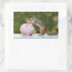 Pegatina Rectangular Cute Chipmunk con divertida foto de un banco de di